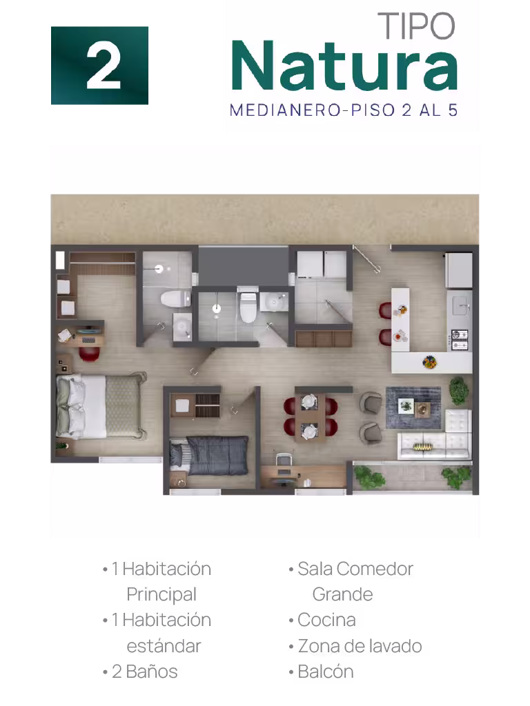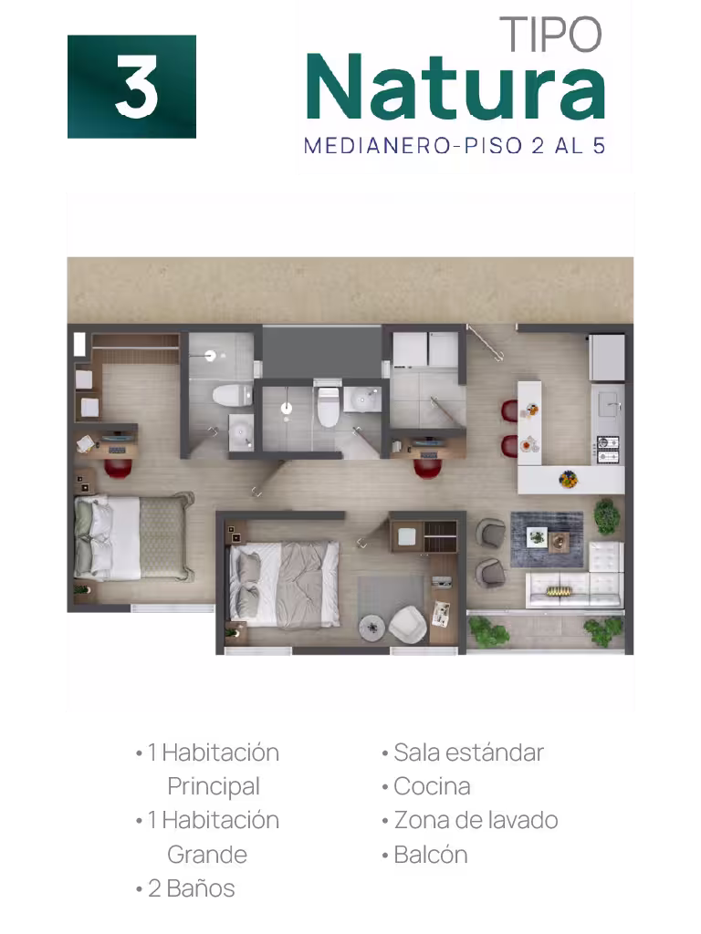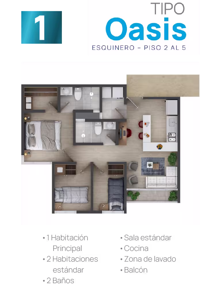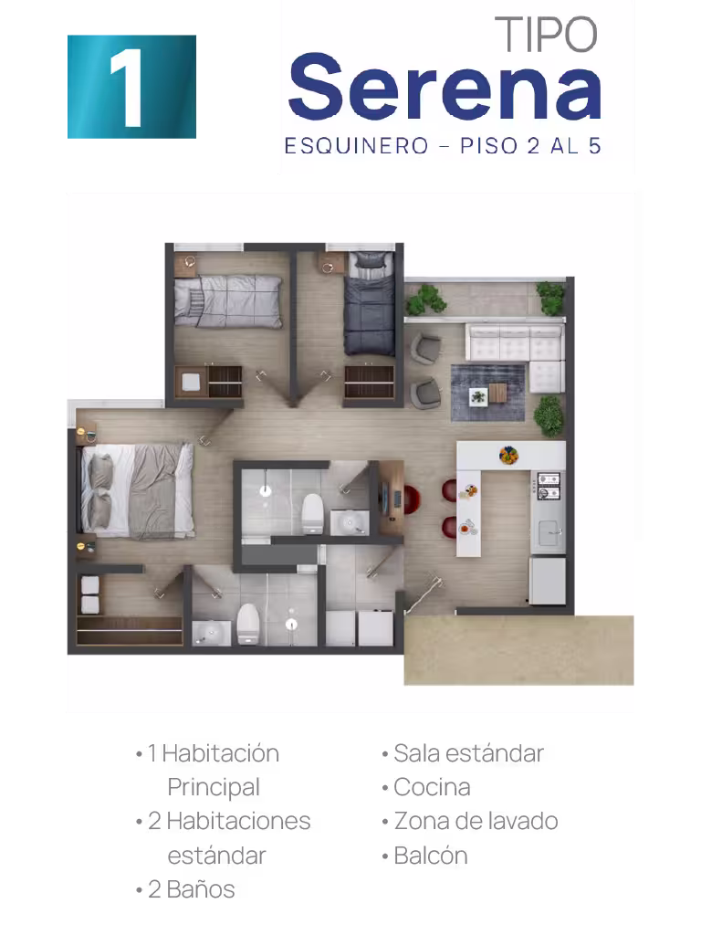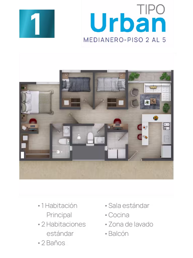 En cada torre encontrarás cuatro tipos de suites, cada una adaptable a tus gustos y necesidades. Elige tu suite y personalízala ajustando los espacios según tus preferencias, estilo de vida o las necesidades familiares. Esta flexibilidad te ofrece la oportunidad de configurar tu hogar a la medida
