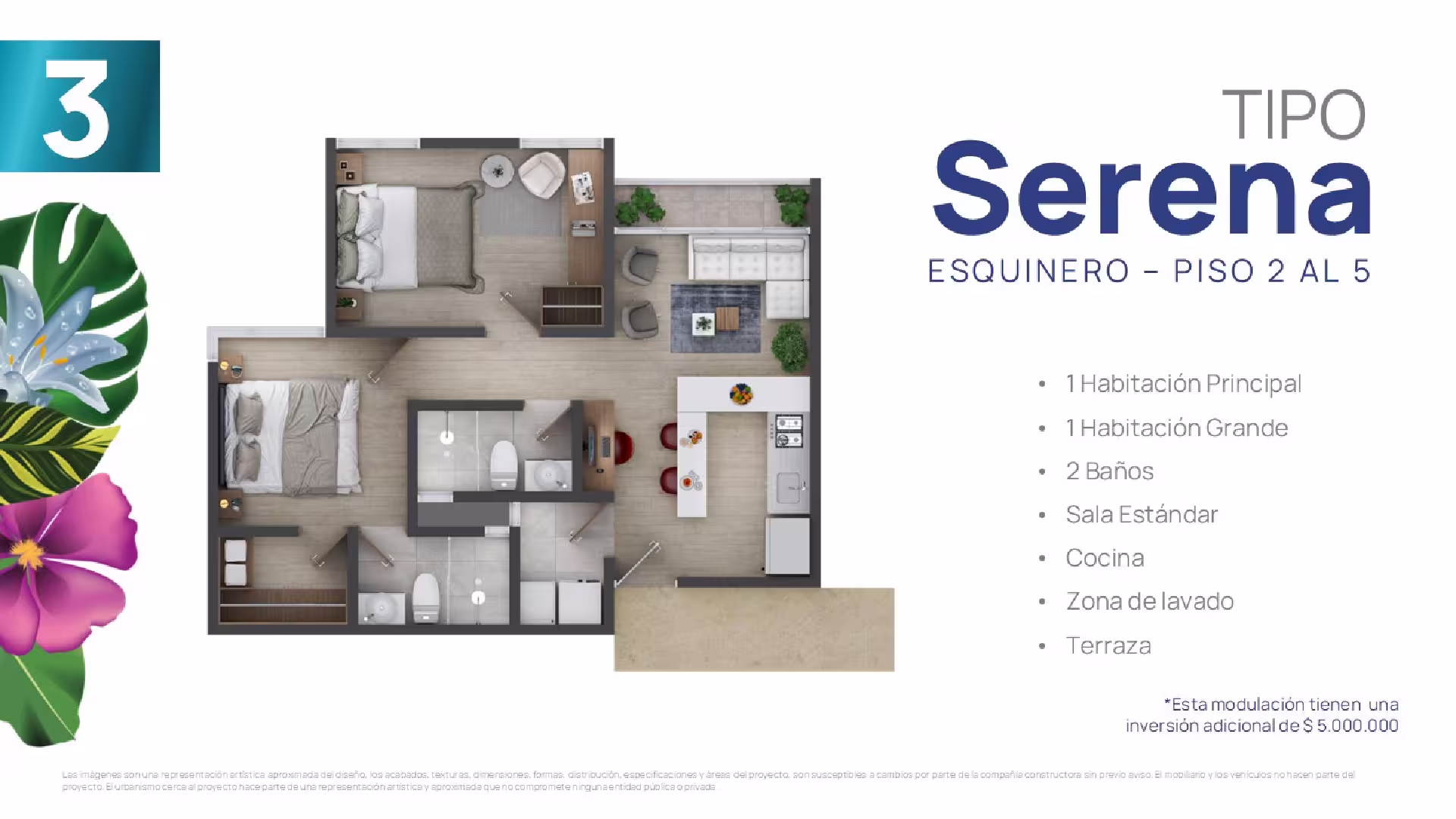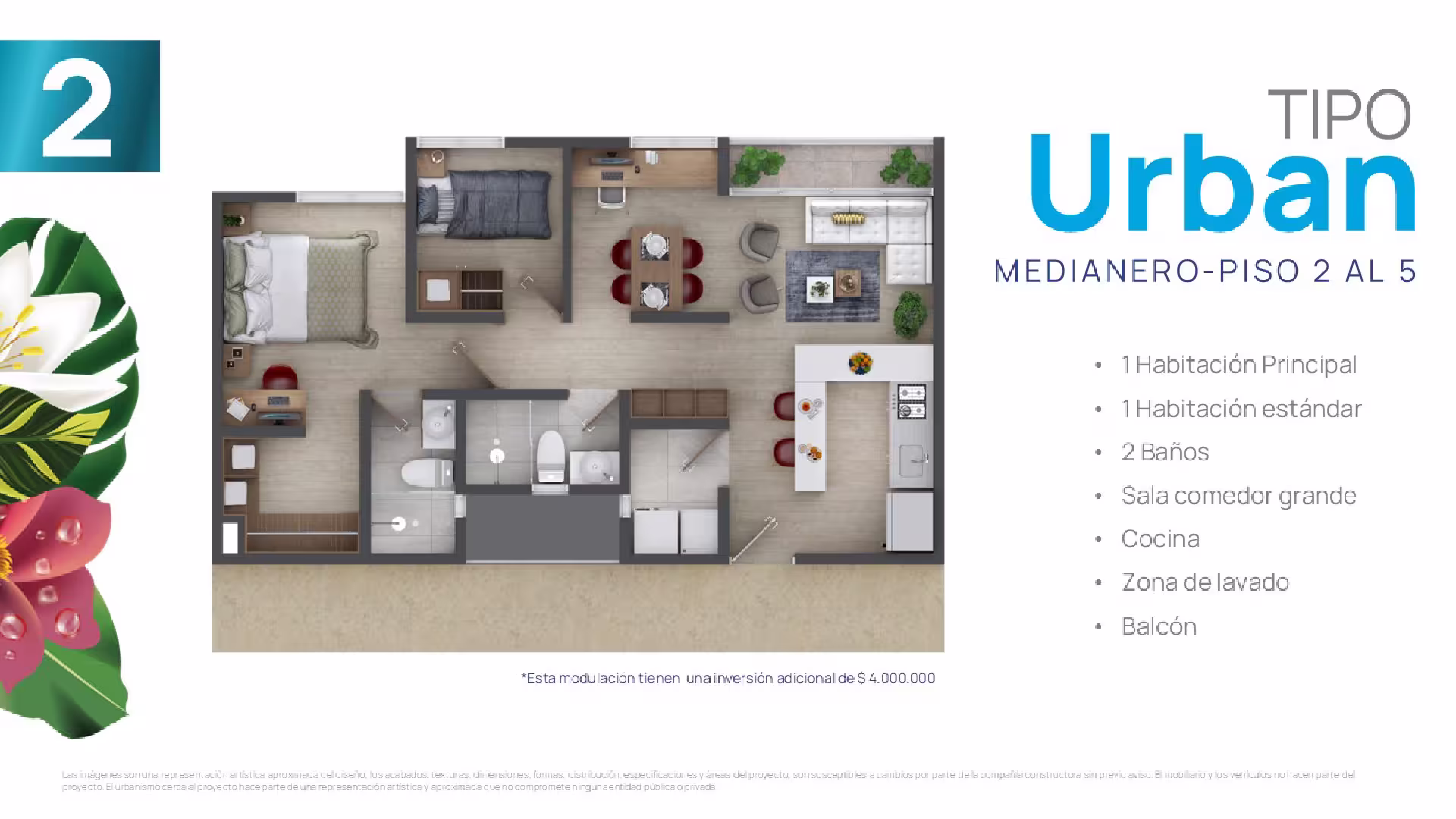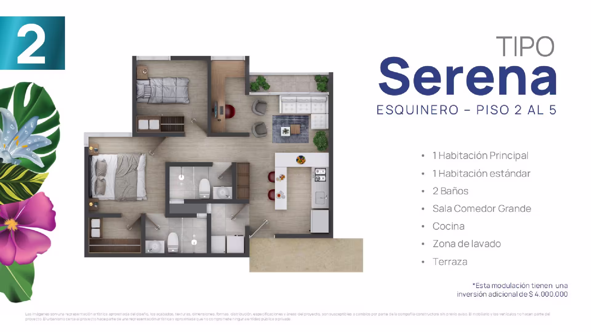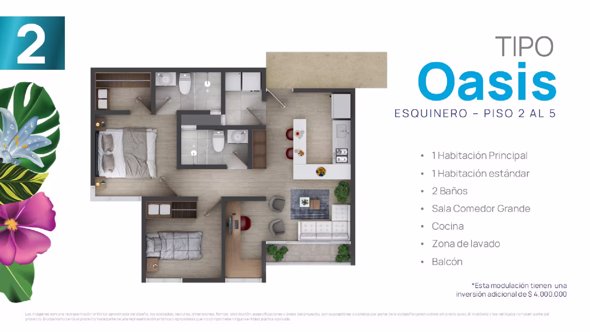 En cada torre encontrarás cuatro tipos de suites, cada una adaptable a tus gustos y necesidades. Elige tu suite y personalízala ajustando los espacios según tus preferencias, estilo de vida o las necesidades familiares. Esta flexibilidad te ofrece la oportunidad de configurar tu hogar a la medida